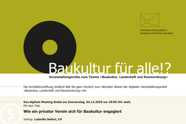 Die Architekturstiftung Südtirol lädt Sie ganz herzlich zum nächsten Abend der digitalen Veranstaltungsreihe